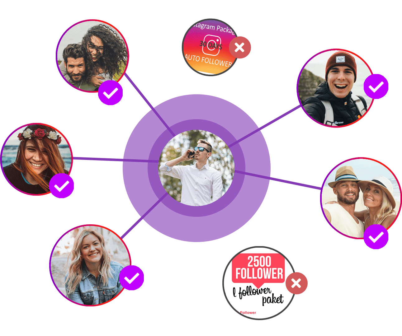 Non fidarti di falsi followers o di servizi simili che non interagiscono con il tuo account. Invece, comincia direttamente con le nostre tecniche uniche di marketing organico su Instagram. Con il nostro aiuto, troverai facilmente nuovi followers, reali ed attivi del tuo pubblico oggettivo e che sono realmente interessati a te o al tuo buisness.